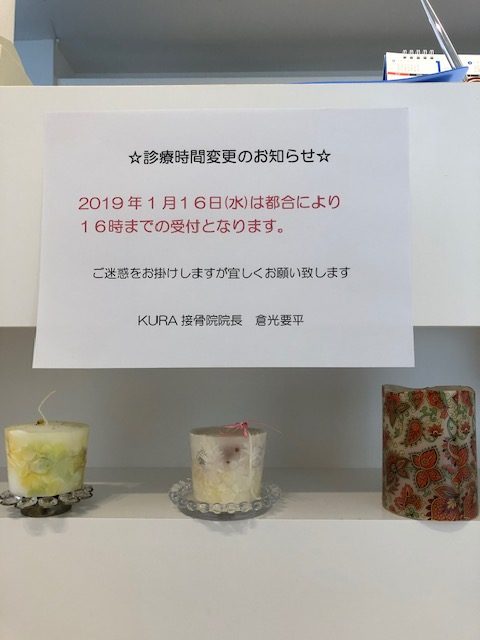 ご迷惑をお掛けしますが宜しくお願い致します。 KURA接骨院 院長 倉光