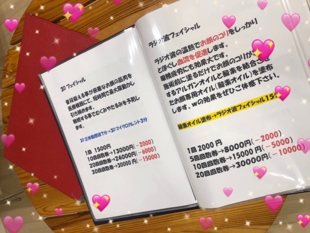 治療の回数券はもちろんですが、酸素BOX、骨盤メニュー、美容メニューは回数券がかなりお得です!