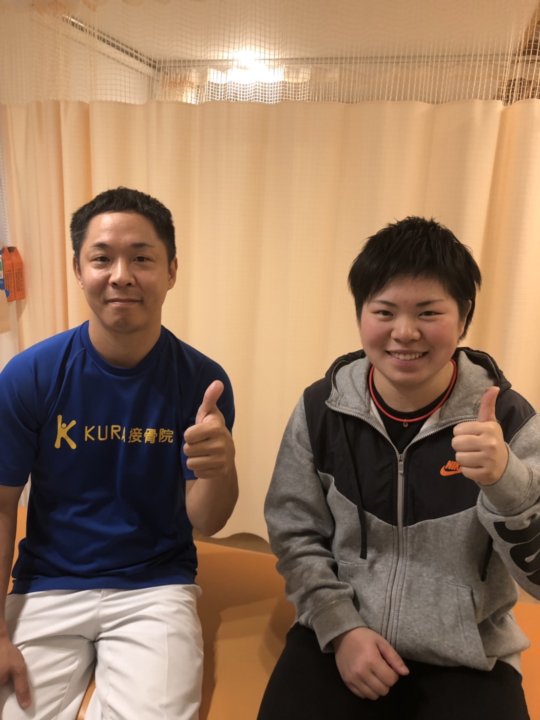 来月埼玉県で行われる平成30年度JOCジュニアオリンピックカップ、第39回全日本ジュニアウェイトリフティング選手権に出場が決まっている薄木選手が来院してくれました!!
