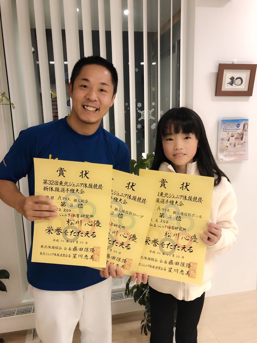 痛みのケアとコンディショニングで来院してくれていた新体操選手が大会の結果と賞状を持って来院してくれました☆