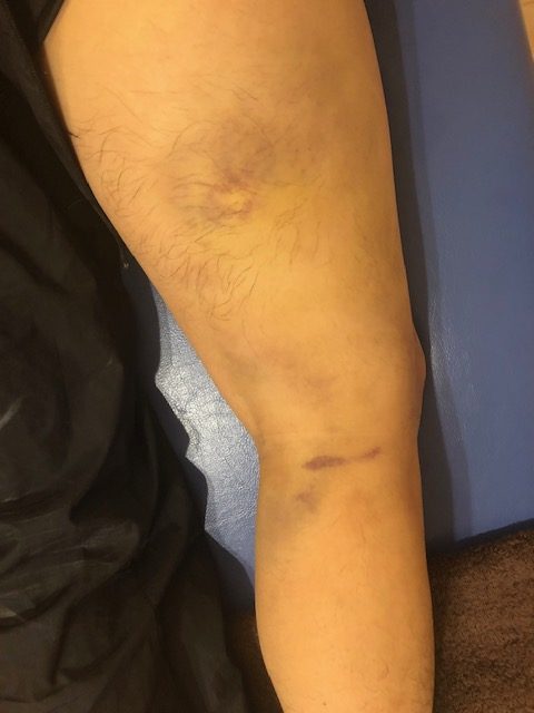 練習中にふとももをケガしてしまった大学の体操選手、超音波画像観察装置で確認すると筋肉が切れて大量に出血も!!