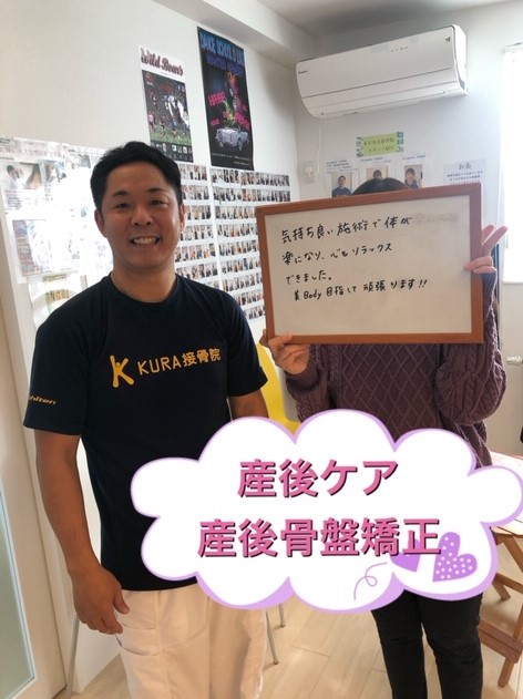 先日は2人目の出産後の産後ケア(産後骨盤矯正)で来院されていた患者様が妊娠し、3人目の出産に向けて産前ケア(マタニティケア)を受けて頂いた患者様から、今回が一番安産だったと嬉しいお言葉を頂き、現在は再度産後ケア(産後骨盤矯正)でご来院頂いています♪♪