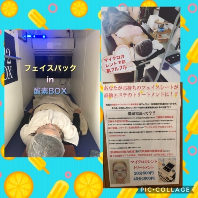 もう一つは酸素ボックス。入ってるだけでも血行が良くなりお肌の調子も良くなりますがフェイスシートをする事で更に艶肌に