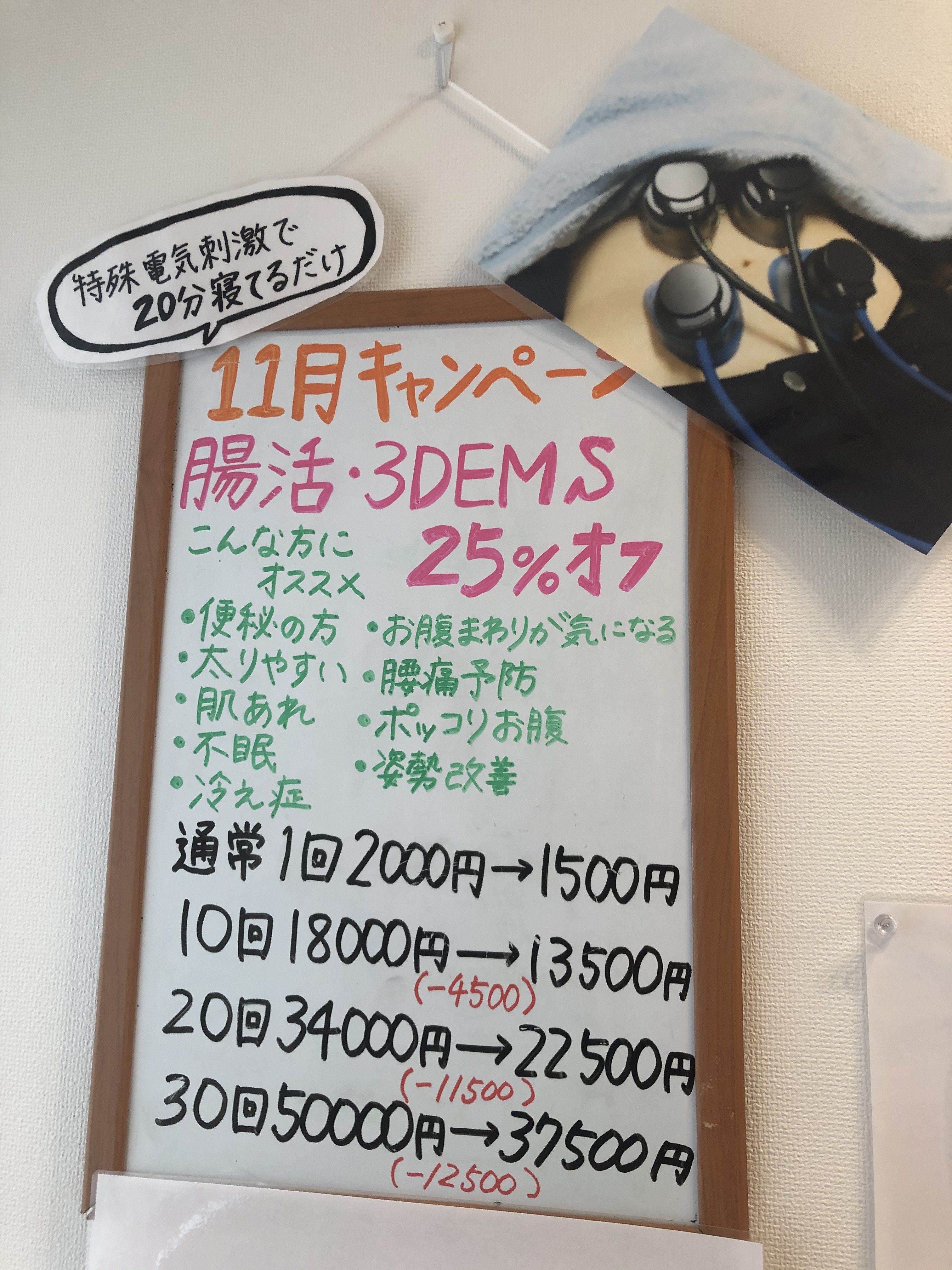 令和2年11月のKURA接骨院キャンペーンは【3D EMS】と【腸活】です☆